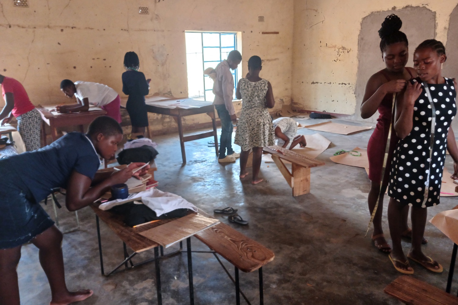 We continued training students in garment construction, welding, cosmetology, carpentry and joinery, and plumbing and drain laying using equipment purchased earlier this year. Enrolment has now reached 130 students, and as training intensified, consumable materials began to run low: zips and elastics for tailoring, welding electrodes and discs, hair and nail products, timber and fixings, and PVC pipes for plumbing practice.